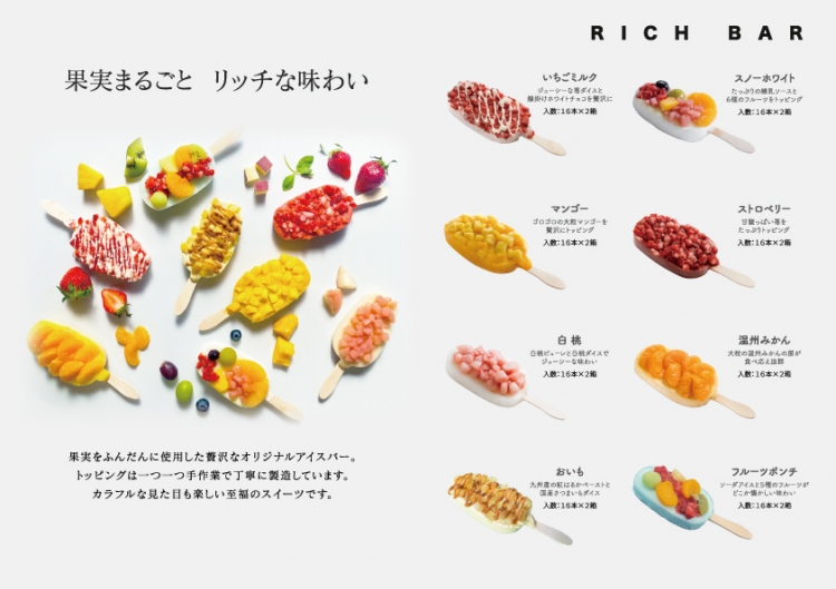 果実をふんだんに使用した贅沢なオリジナルフルーツアイスバー。その他、「ふわっふわでとろける新食感かき氷」や飲食店様用アイスも製造しています!是非お気軽にお立ち寄りください!