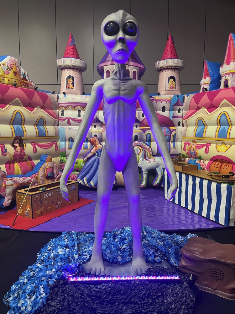 シアター映像の新コンテンツ、「宇宙」をテーマにした巨大宇宙人のオブジェが登場!アイキャッチ要素としてもご利用いただけます。